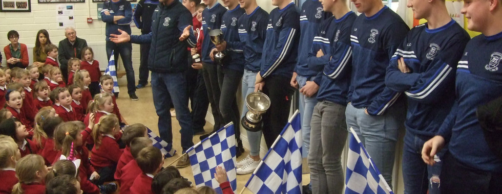 The all-conquering U17s came to the school today with the cups and spoke to the children about training hard and practising skills. They're the proof that success comes from sticking with it and working hard.